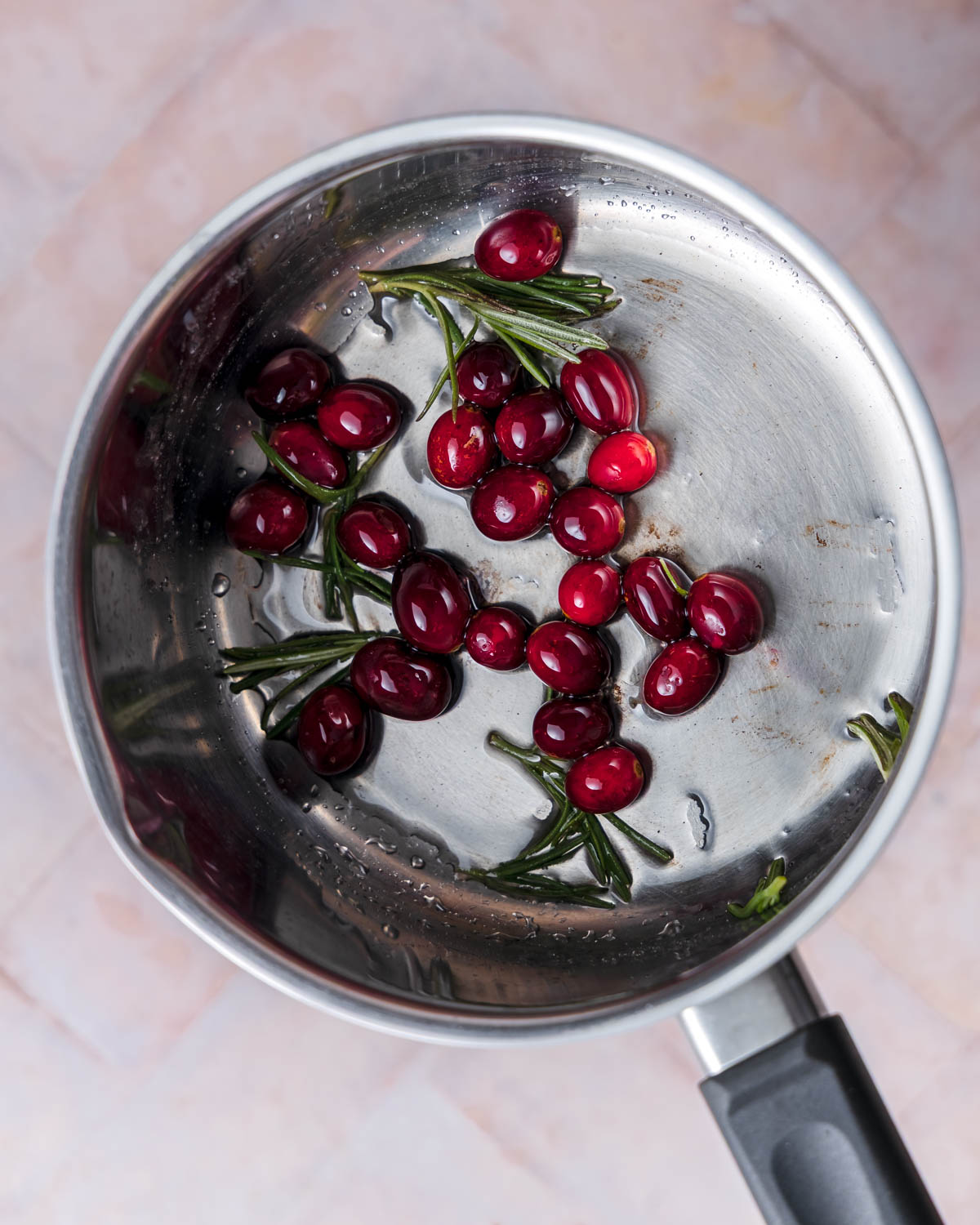 - Schwenke Cranberries und Rosmarin darin für 3-5 Minuten