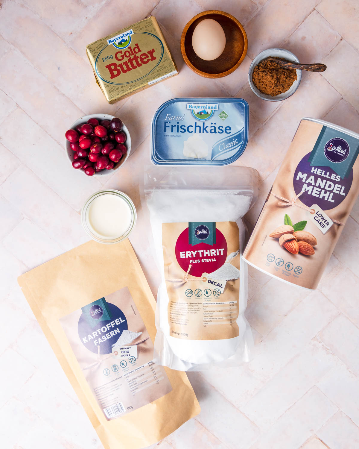 Für diese Low-Carb-Chai-Latte-Tarte verwende ich Farmi Frischkäse und Goldbutter von Bayernland. Ein Unternehmen aus der Region das selbst produziert und deutschlandweit und international Bayernland Produkte vertreibt. Außerdem verwende ich kein Mehl und keinen Zucker sondern diese LowCarb Zutaten:
