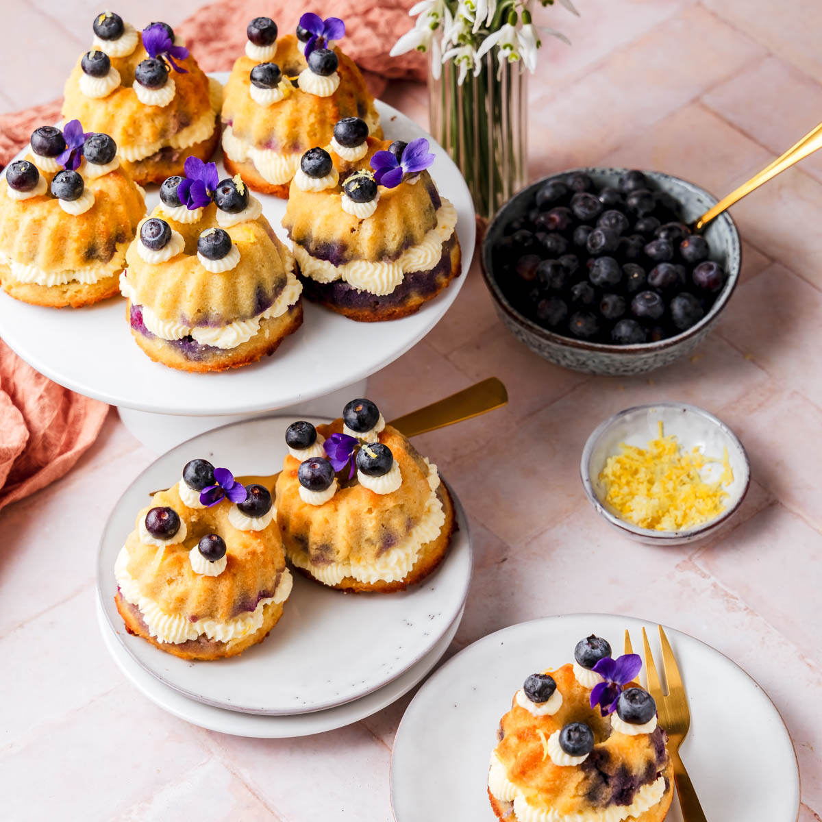 Gefüllte Zitrone-Heidelbeer Gugelhupfe